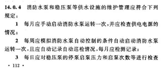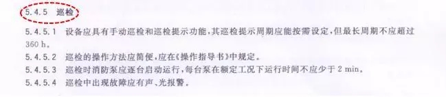 在各個部分標(biāo)準(zhǔn)的前言中,均對該國標(biāo)的強(qiáng)制執(zhí)行與推薦執(zhí)行部分進(jìn)行了劃分,在各個國標(biāo)第5章內(nèi)容描述了對固定給水設(shè)備的控制要求,屬于強(qiáng)制執(zhí)行部分。其中均提到的對消防泵巡檢的要求。下面截取了標(biāo)準(zhǔn)中的描述: