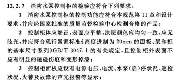 在第12.2.7.3章節(jié)中,提出消防水泵控制柜面板應(yīng)設(shè)置巡檢狀況顯示,由此可見,消防水泵控制柜需要進(jìn)行巡檢,實(shí)時反饋巡檢狀況。