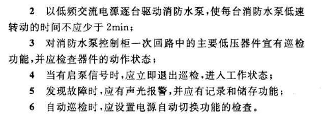 其實(shí)國家早在2002年就在《GA30.2-2002:固定消防給水設(shè)備的性能要求和試驗(yàn)方法》中,規(guī)定了長期在非運(yùn)行狀態(tài)下的消防泵應(yīng)具有巡檢功能及試驗(yàn)方法。并且給出了巡檢功能的具體要求,是消防巡檢產(chǎn)品的設(shè)計(jì)起點(diǎn)。見下圖